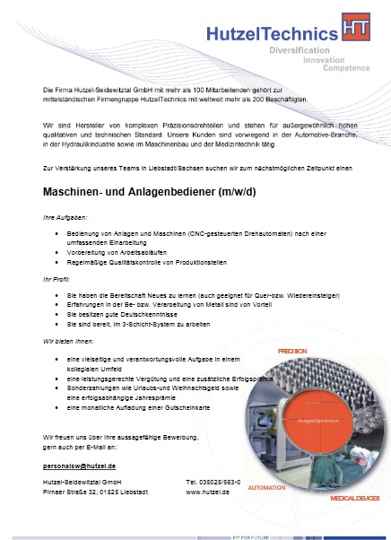 Bitte senden Sie Ihre aussagekräftigen Bewerbungsunterlagen an: